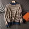 Jesień Zima Retro Wszechstronny Półgolf Luźny i Cienki Sweter Dzianinowy Kobiety Długi Rękaw Casualowy Sweter Pulower w Kratę Sweter Dzianinowy Damski
