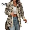 Damska wiosna jesień cienka koszula płaszcz z klapami z długim rękawem jednorzędowa lampart patchworkowy kolor luźna kurtka znosić