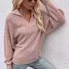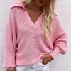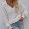 IHUASU Jesienno-zimowy sweter damski z dzianiny z długim rękawem, luźny, w jednolitym kolorze, z dekoltem w serek