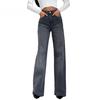 Damskie jeansy z nadrukiem w panterkę, z wysokim stanem i szerokimi nogawkami, długie, vintage, Y2k Streetwear
