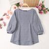 ZANZEA Damska bluzka z okrągłym dekoltem, rękawem 3/4 i nadrukiem w kratę
