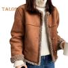Damski zimowy płaszcz gruby pluszowy krótki typ okrągły dekolt jednokolorowy jednorzędowy luźny utrzymujący ciepło codzienna kurtka dojazdowa do szkoły