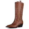 DoraTasia Fashion Szpiczasty Czub Gruby Obcas Haft Styl Western Damskie Kozaki do Połowy Łydki Vintage Wiosna/Jesień Damskie Kozaki