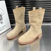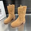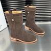 Moda Zamszowe Damskie Śniegowce do Połowy Łydki Płaskie Buty Modowe Kobieta Trend 2025 Zimowe Botki Chelsea Goth Nowe Mujer Krótkie Botki