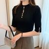 Wiosna Jesień Koreański Solid Sweter Kobiety Krótki Rękaw Topy Femme Casual Slim Kobieta Sweter Dzianinowe Ubrania