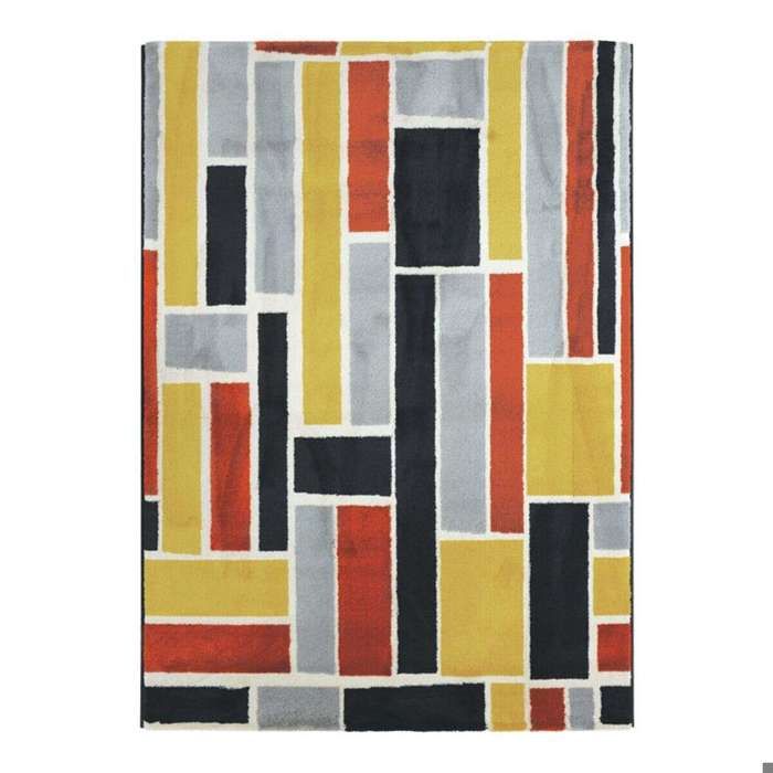 Tapis salon lumineux effet laineux motifs labyrinthe multicolore 120x170