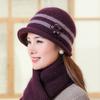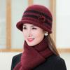 Średniowieczna czapka dla starszej mamy z jesienno-zimowym temperamentem, modna prosta czapka z futra królika z grubym aksamitnym szalikiem