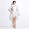 Wiosna Jesień Kobiety Vintage Stojący Kołnierz Druk Koronka Patchwork Mini Krótkie Sukienki Imprezowe