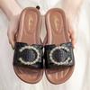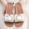 Modne koreańskie cekinowe kapcie dla kobiet lato 2024 Nowe modne metalowe wzornictwo płaskie kapcie buty dla kobiet Zapatos De Mujer