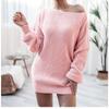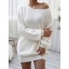 2025 New Autumn Winter Solid Color Loose Woolen Dress Long Sleeve Slash Neck Casual Knitted Mini Dresses