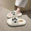 Fashion Fluffy Slippers Women Wear Autumn Winter 2024 New Niche Letters Home Flat Word Cotton Slippers