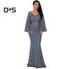 Suknia wieczorowa dla kobiet z rękawami dzwonkowymi, cekinami, linią A, dopasowana, z głębokim dekoltem w serek, sukienka maxi ze średnim stanem, zapięcie na suwak z tyłu, sukienka na studniówkę