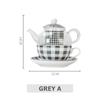 Ceramic Tea for One Set Checkered Design Glass Teapot Fine Bone China Saucer Teacup Tea Strainer Infuser Teaware with Gift Box