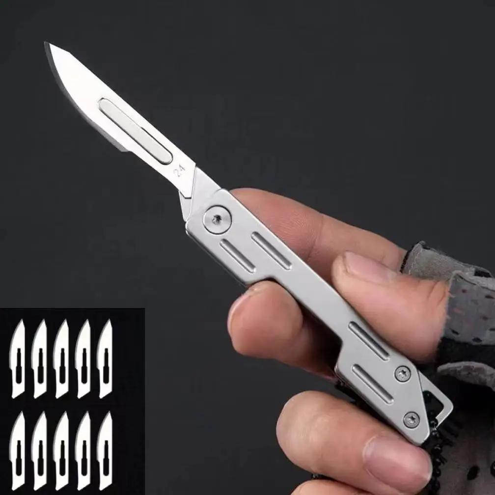 Stainless Steel Utility Knife Edge Outdoor Folding Knife Can Be Replaced Blade Multi-functional Fruit Knife EDC Camping Tool