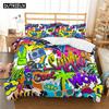 Kreskówkowy Nadruk Graffiti Poliestrowe Zestawy Pościeli Dziecięce Pokrowce Chłopięcy Zestaw Pościeli Dla Nastolatków Zestaw Pościeli King Size