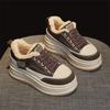 Zimowe grube trampki na platformie dla kobiet Ciepłe, antypoślizgowe, sznurowane buty do chodzenia z podszewką ze sztucznego futra Damskie trampki tenisowe ze skóry PU z podszewką z polaru