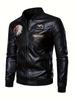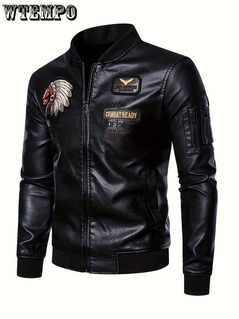 Men's Tribal Portrait Embroidery Stylish PU Leather Jacket - Multi-pocket Street Style Retro Classic Bomber Jacket - For Men - Made of PU Leather