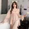 Golden Velvet Autumn Sleeping Sleepwear Winter Pajamas Pyjama Nightie Women's Pajamas Set Lingerie for Ladies Nightwear