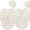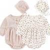 KIDDIEZOOM Dziecięcy śliczny modny kombinezon dla dziewczynki + czapeczka bawełniany miękki zestaw dla noworodka 0-2 lata
