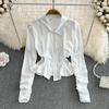 Wiosenna Damska Koszula Plisowana Bez Talii z Długim Rękawem Temperament Krótki Top