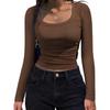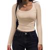 YYFS Moda damska Casual Wiosna Jesień Jednolity kolor Nadruk Długi rękaw Bluzki i koszule z dekoltem w kształcie litery U