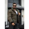 Concealable Hooded Men's Puffer Nubuck Leather Coat