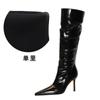 Retro Moda Kobiety Czarne Kozaki Do Kolan Szpiczaste Lakierowane Skórzane Marszczone Wysokie Obcasy Szpilki Szpiczaste Noski Zimowe Buty