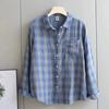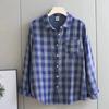 Bawełniana dwuwarstwowa tkanina Wiosna Jesień Długi rękaw Koszula damska wysokiej jakości w kratkę Luźna góra Wyszczuplająca koszula przeciwstarzeniowa