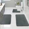 3PC, pure color sponge flat simple style bathroom toilet water-absorbent non-slip floor mat set, can wash home decoration