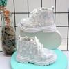 Buty Dziecięce Botki dla Dziewczynki 2024 Wiosna Jesień Błyszczące Maluchy Casualowe Krótkie Botki Moda Dziecięce Wszechstronne Buty Gruba Podeszwa