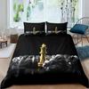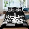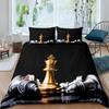 Międzynarodowy Szachowy Zestaw Poszwy na Kołdrę Rozmiar Queen Zestaw Pościeli dla Miłośników Szachów Dla Dzieci Dorosłych Mikrofibra Czarna Baza 23 szt. Poszwa na Kołdrę