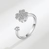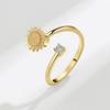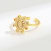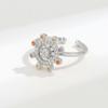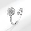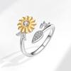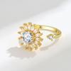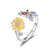 Pierścień z cyrkonii z otwartym kwiatem, damski pierścień z niszą, dwukolorowy słonecznik, podwójna kamelia, spersonalizowany, uniwersalny, regulowany pierścień z wiatrakiem