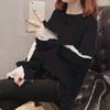 Sweter damski z długim rękawem, z koronkową wstawką patchworkową, z okrągłym dekoltem, o luźnym kroju, dzianinowy top w jednolitym kolorze na jesień i zimę