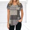 Damska koszulka retro w kratę koszulki z nadrukiem patchworkowe ubrania O Neck bluzka z krótkim rękawem ponadgabarytowe bluzki damskie damska koszula Harajuku
