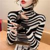 Jesień i Zima Sweter w Paski z Wysokim Kołnierzem Dzianinowa Koszulka Bazowa Damska z Długim Rękawem Unikalny Top