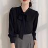 Women Blouses Shirts 2025 Spring Long Sleeve Women Blouse Shirt Bow Collar Black White Chiffon Blouse Shirt Women Tops J862