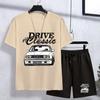 Męski zestaw z krótkim rękawem Modny, swobodny samochód BMW Nadrukowany uliczny trend Okrągły dekolt Krótkie spodenki z krótkim rękawem Męski dwuczęściowy zestaw
