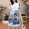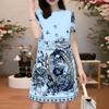 ZANZEA Damskie letnie sukienki z okrągłym dekoltem i krótkim rękawem, z nadrukiem w talii