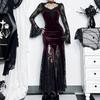 Letni temperament Seksowna lekko przezroczysta dopasowana sukienka z długim rękawem i długim ciemnym koronkowym ogonem rybim dla kobiet