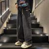 Czarne jeansy męskie z szerokimi nogawkami: Spodnie młodzieżowe z prostymi nogawkami jesień/zima 2024
