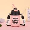 Nowy kreatywny kubek do kawy ze słomką dla dziewcząt, który będzie nosił ze sobą kubek ze słomką ze sznurka o dużej pojemności, podwójny kubek próżniowy do picia