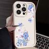 Prosty niebieski kwiatowy nadruk odporny na wstrząsy matowy futerał na telefon TPU do iPhone'a 16 Pro 15 Pro Max 14 Plus 13 12 11 XR XS 8 7 Ochrona obiektywu miękka tylna obudowa