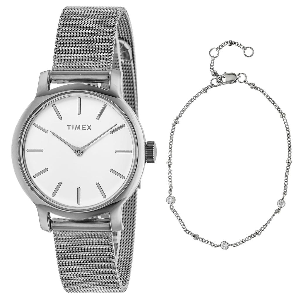 Zegarek Timex Trend Transcend Biała Tarcza Kwarcowy 50M Wodoodporny Szkło Mineralne 31mm TWG064000 Srebrny [TIMEX] Damski [Produkt]