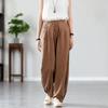 "Women's Cotton & Linen Lantern Trousers: Autumn/Winter, Sand Washed, Slim Fit, Plus Velvet Thickened."