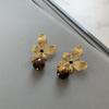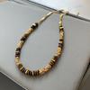 Naszyjnik z Kamienia Tygrysie Oko i Pozłacane Kolczyki w Kształcie Kwiatów - Styl Retro Średniowieczny, Wszechstronny, Damski Łańcuszek na Obojczyk.