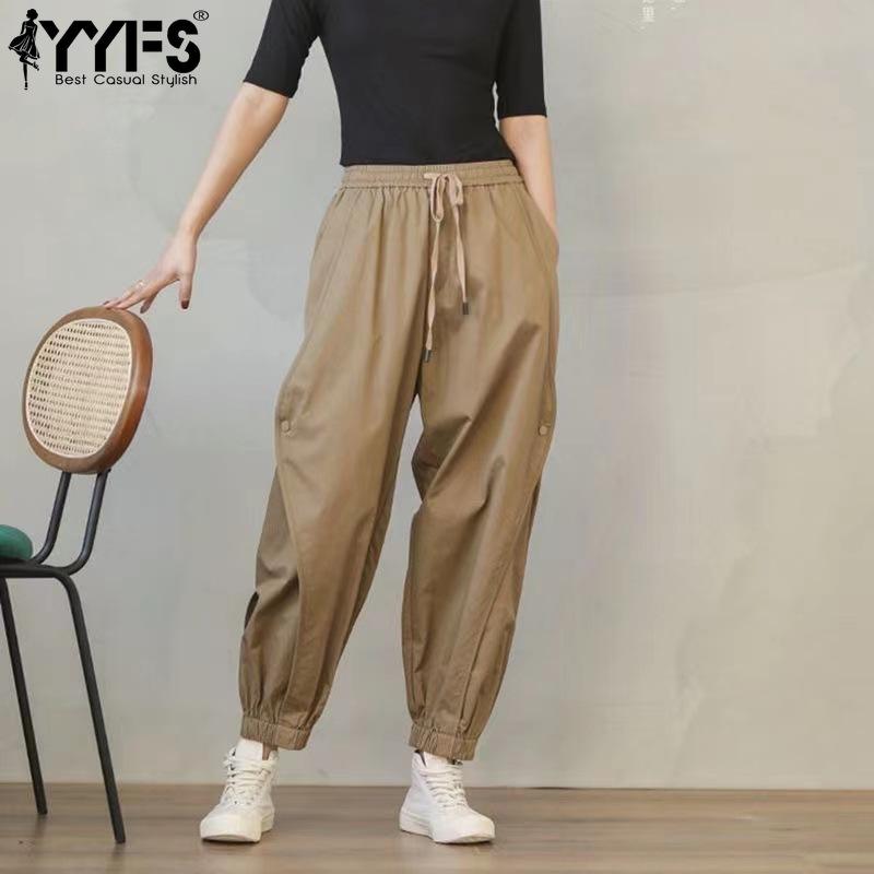 YYFS Modne damskie spodnie i spodnie capri, na co dzień, w jednolitym kolorze, z wysokim stanem