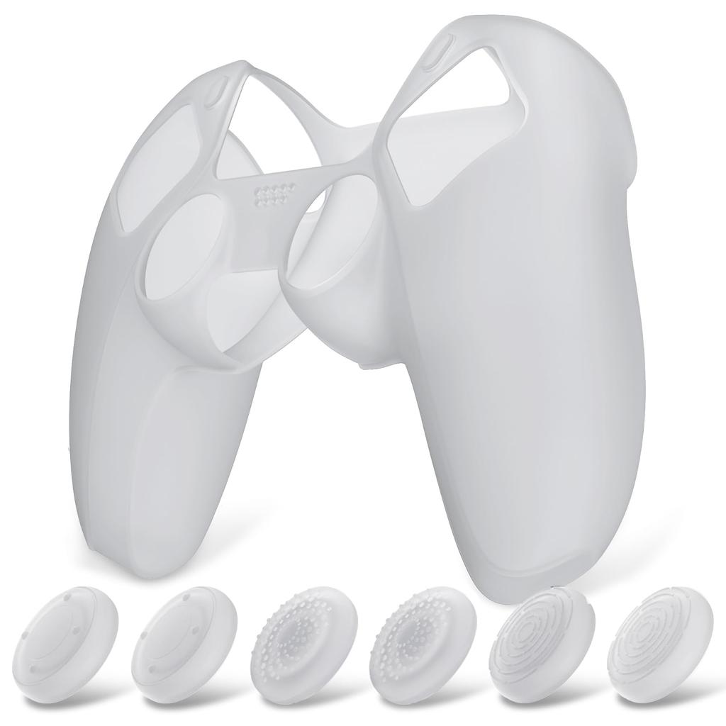 Kontroler PlayVital Pure Series PS5 kompatybilny z silikonowym, ochronnym, miękkim gumowym uchwytem kontrolera PS5 z 6 gałkami do gry na kciukach, można używać na