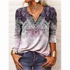 Kobiety Jesień Guzik Półotwarty Kołnierzyk Etniczny Midi T-Shirt Kobiety Długi Rękaw Top Plus Size