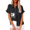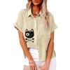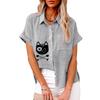 Moda damska plus size Bluzka z nadrukiem kota Lato&jesień Luźna koszula z krótkim rękawem zapinana na guziki Damski casualowy t-shirt lniany