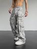 Męskie spodnie retro w amerykańskim kamuflażu z prostymi nogawkami i luźnym krojem